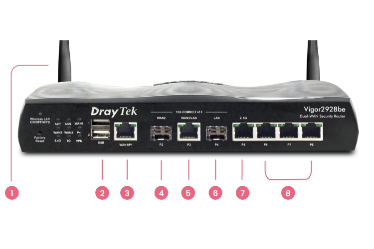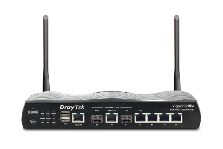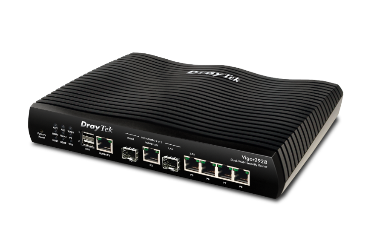 Séria DrayTek Vigor 2928 je výkonný router s dvoma sieťami WAN VPN a vysokorýchlostným 10-gigabitovým pripojením, ktorý je určený pre organizácie vyžadujúce vysoký výkon a maximálnu spoľahlivosť. Vďaka podpore VPN, QoS, smerovania založeného na zásadách a pokročilých bezpečnostných funkcií poskytuje Vigor 2928 sieťové riešenie budúcnosti pre moderné podnikové siete.
