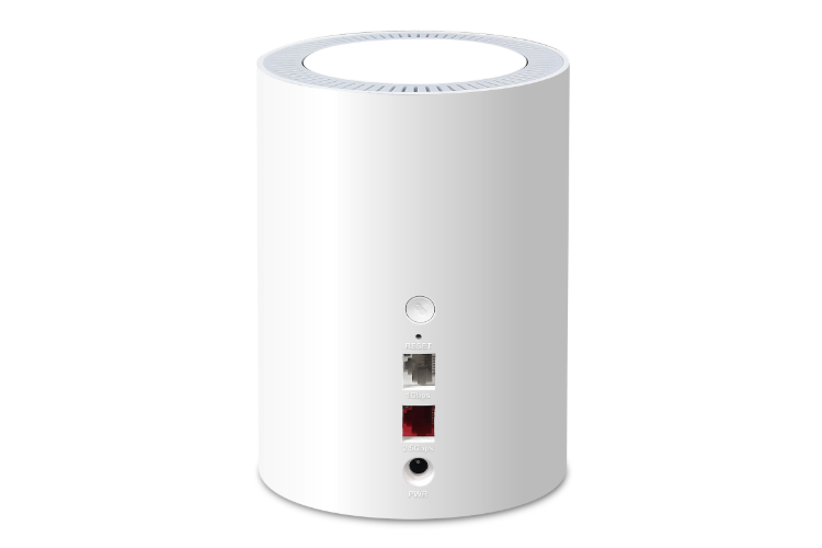1. Tlačidlo Wireless Mesh 2. 1 G/100M/10M Base-T RJ-45 LAN port (sivý) 3. 2,5G/1G/100M/10M Base-T RJ-45 LAN port (červený) 4. Vstup jednosmerného napájania 5. Tlačidlo na obnovenie továrenských nastavení